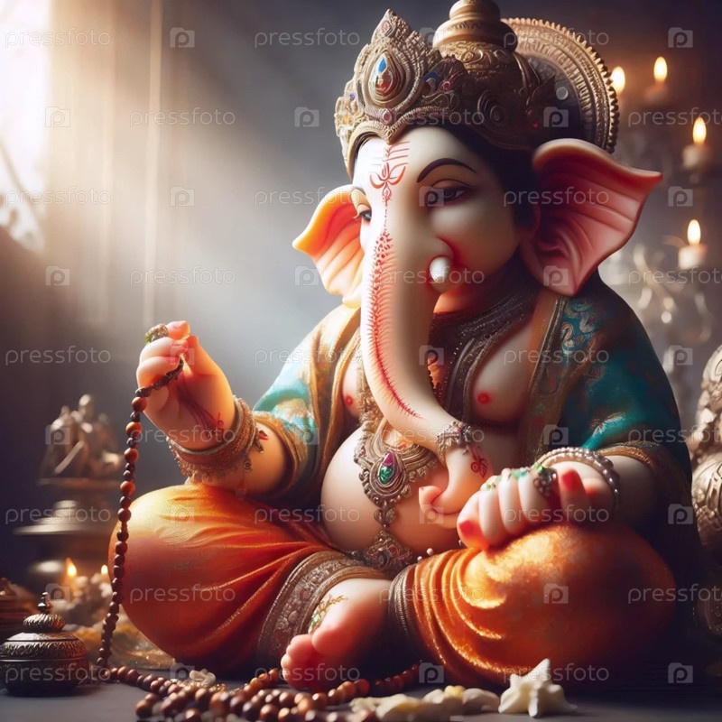 Господь Ганеша с молитвенными бусинами, Ai generated image A