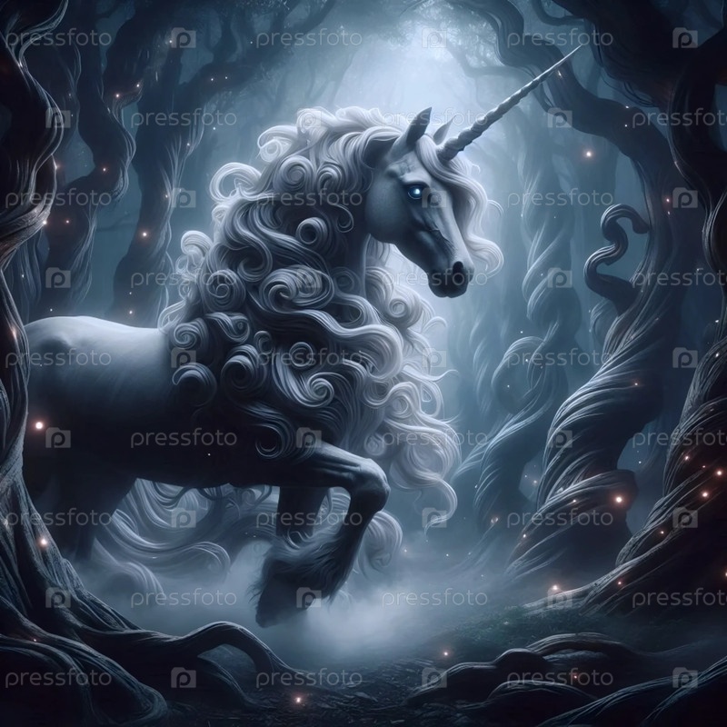 Единорог с сияющими глазами, Ai generated image