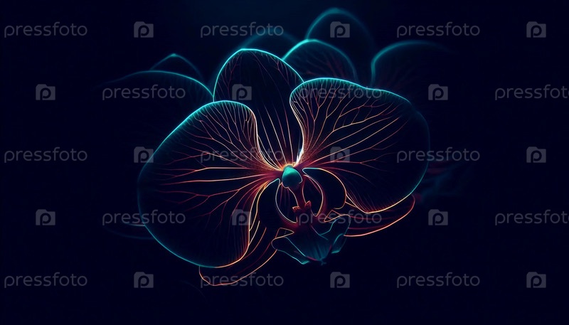 Орхидея с неоновым светом, Ai generated image