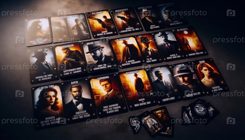Мафиозная игра с картами персонажей, Ai generated image