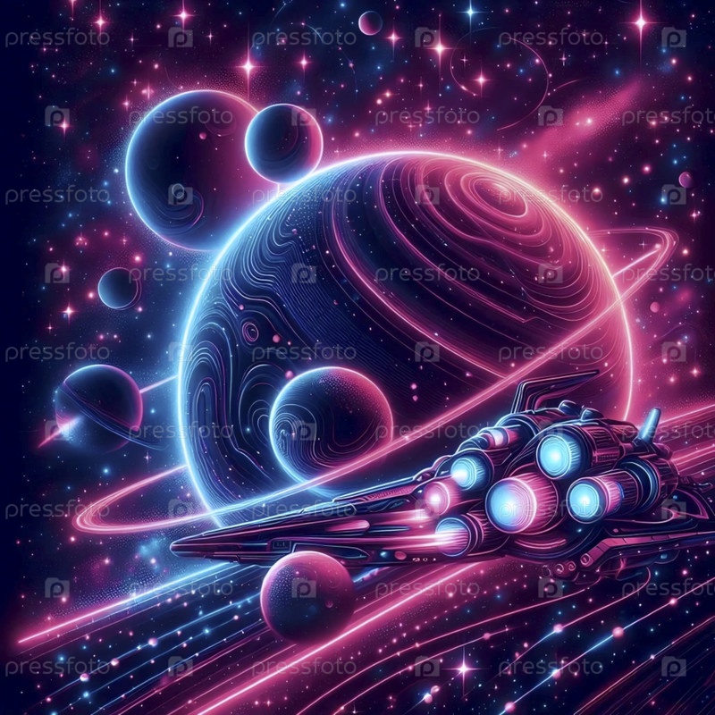 Цифровой неоновый космический художественный плакат, Ai generated image