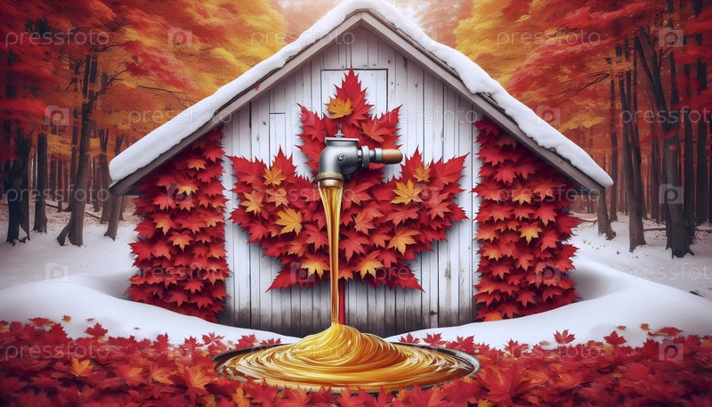 Канадский флаг в производстве кленового сиропа, Ai generated image