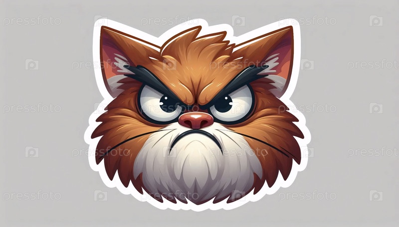 Разгневанный кот с наклейкой со скошенными бровями, Ai generated image