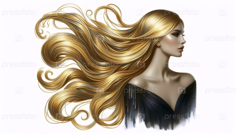 Женщина с золотыми волосами акварель, Ai generated image