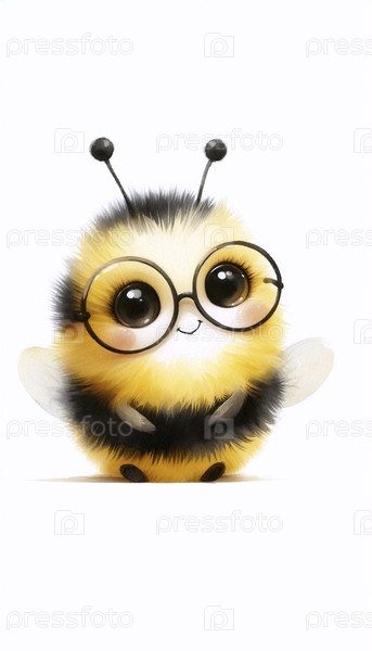 Бамблби с крошечными очками Акварельная художественная печать, Ai generated image