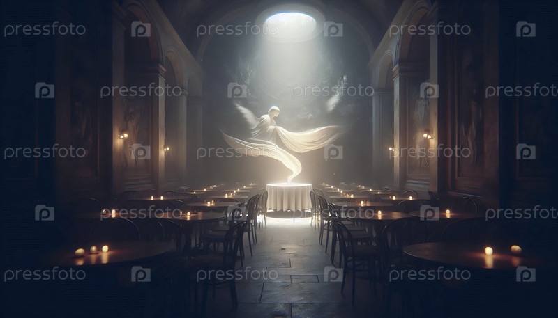 Более широкий снимок с входа в кафе, сцена как одинокое чудо, Ай создал изображение