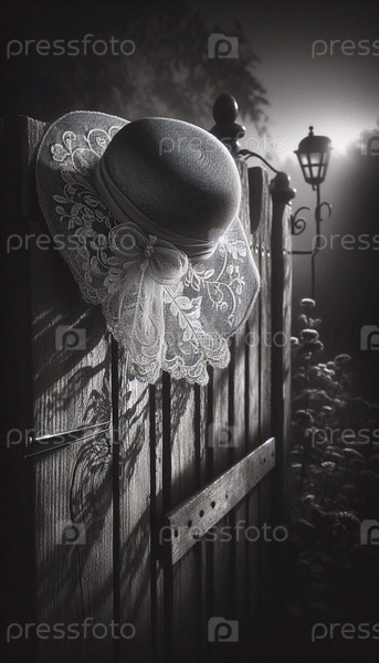 Женская шляпа с завесой, прикрепленная к воротам сада, Ai generated image