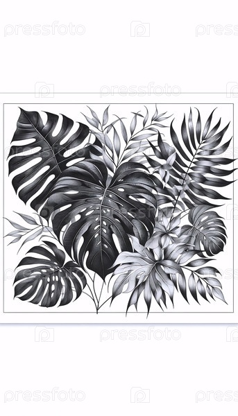 Тропические листья ботаническая линия арт-принт, Ai generated image