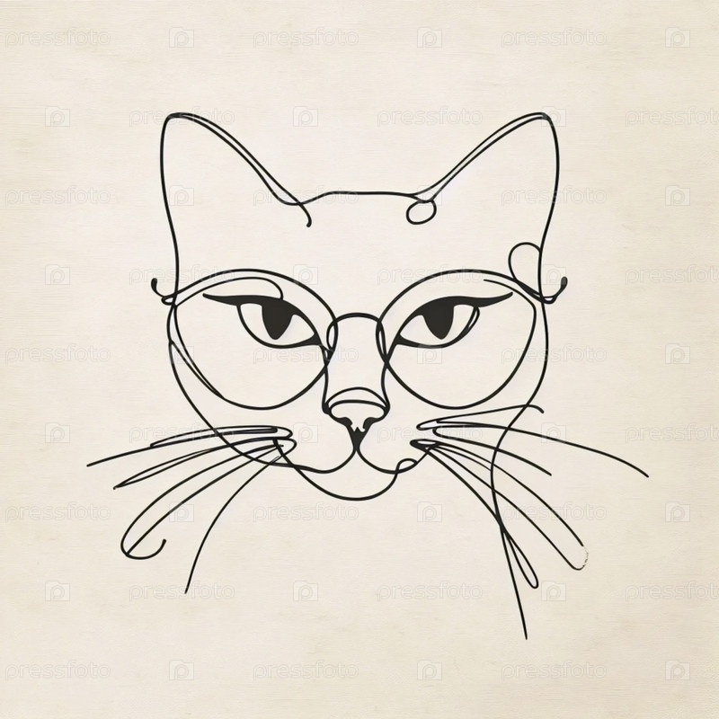 Минималистское линейное искусство кошки с очками, Ai generated image
