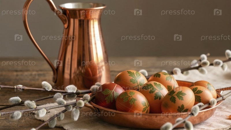 Праздничные пасхальные украшения с крашенными вручную яйцами