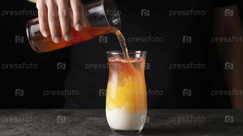 Налейте слойный напиток в высокий стакан