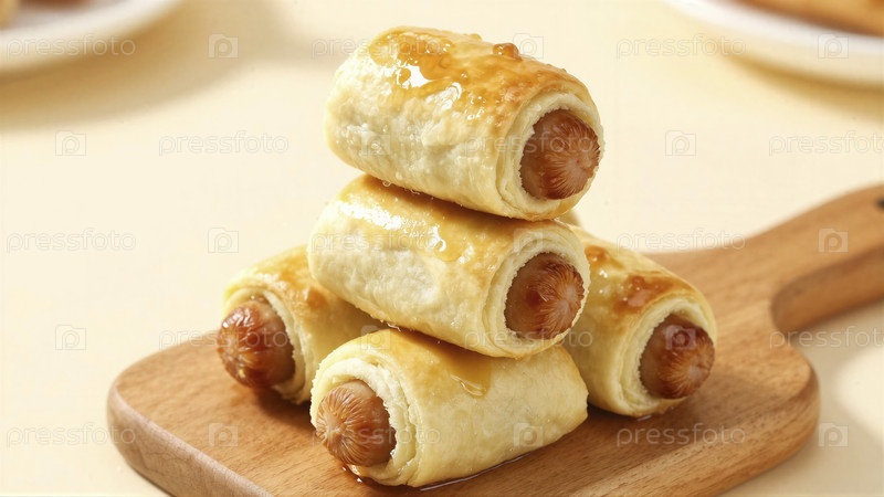 Мини колбасные роллы с масляной глазурью