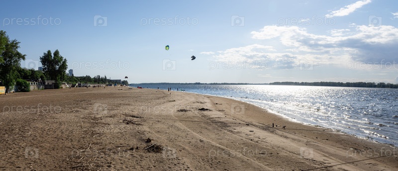 Песчаный берег Волги вдоль набережной города Самара