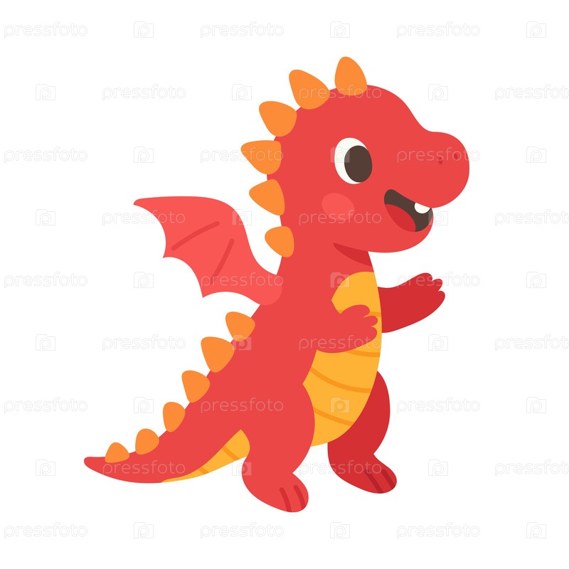 Милый красный дракон с крыльями и шипами, игривая иллюстрация персонажей фантазии для детских книг, темы приключений, видеоигровые графики и блог-рассказ