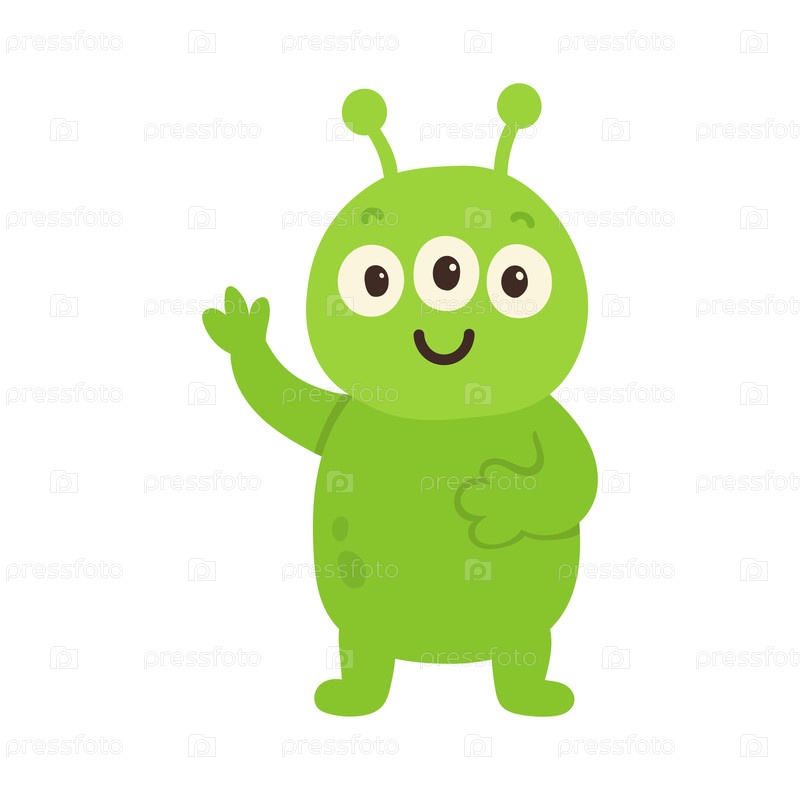 Трехглазый инопланетный мультфильмовый персонаж приветствует зрителей, подходит для дизайна комиксов, логотипов талисманов и игривых иллюстраций существ для детей