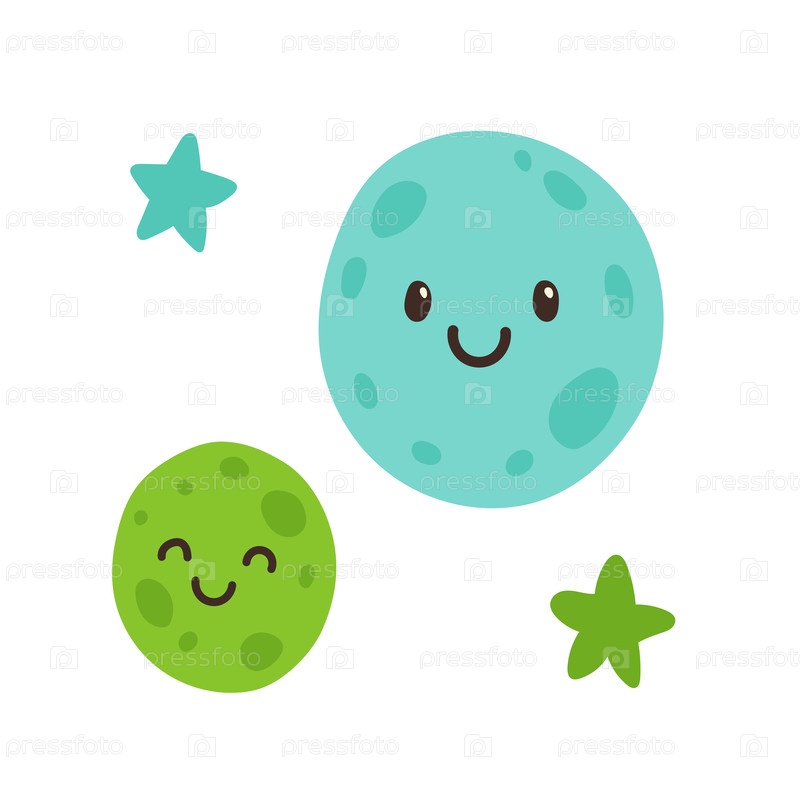 Милые планеты и звезды иллюстрация для детского декора, показывая дружелюбные небесные персонажи для комнаты ребенка, изучение астрономии и дизайн перед сном