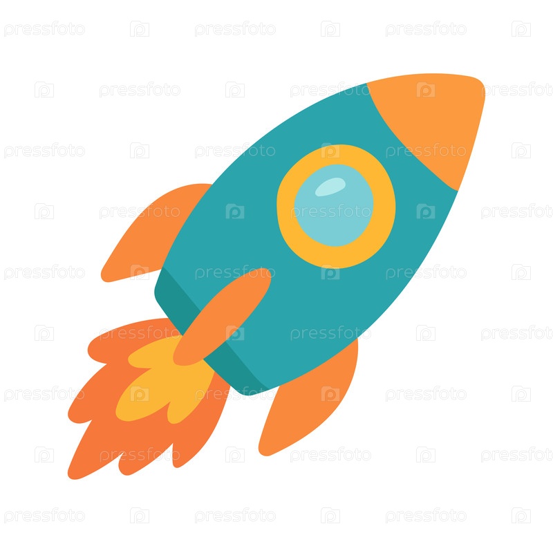 Красочные мультфильмы о запуске ракеты в космос, идеально подходят для тематики технологий стартапов, инновационных концепций и детской научной образовательной графики