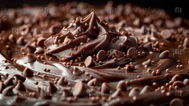 Богатое шоколадное мороженое с какао-рассыпаниями и кремовой текстурой, гастрономический десертный макро для самоотверженной кулинарной фотографии