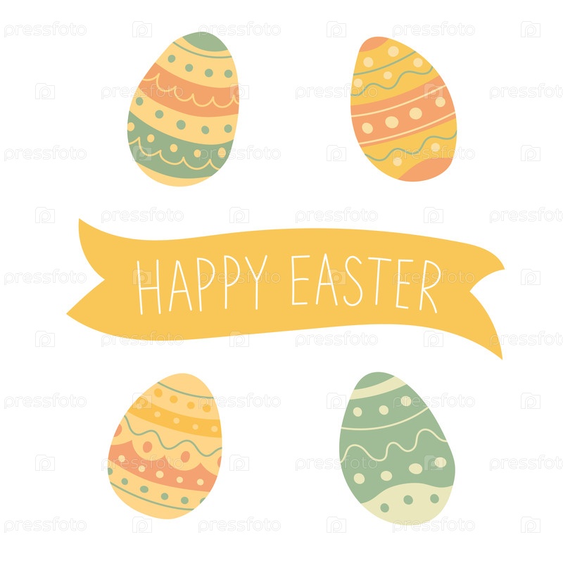 Счастливый пасхальный ленточный баннер с узорами яиц, веселое типографическое оформление для поздравительных открыток, апрельские акции, праздничное брендинг и праздничные посты