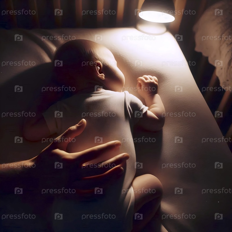 Нежный, личный момент родителя, успокаивающего ребенка посреди ночи, Ай создал изображение
