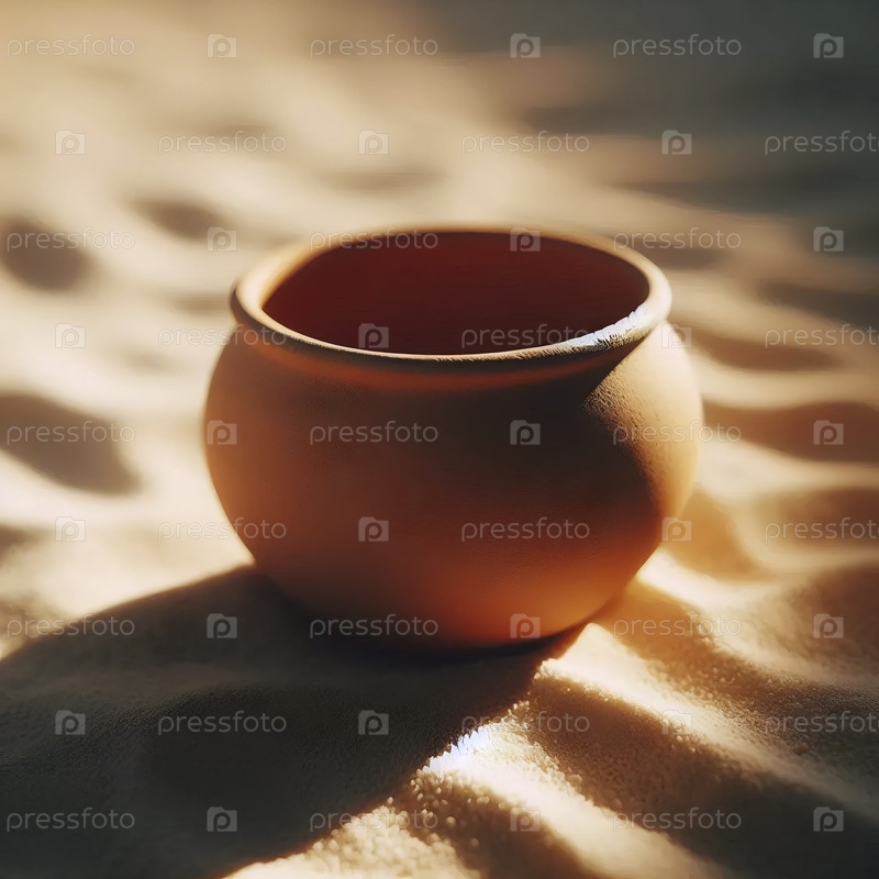 Небольшой макет терракотового горшка растений, пустой и сухой на песчаном грунте, Ai generated image