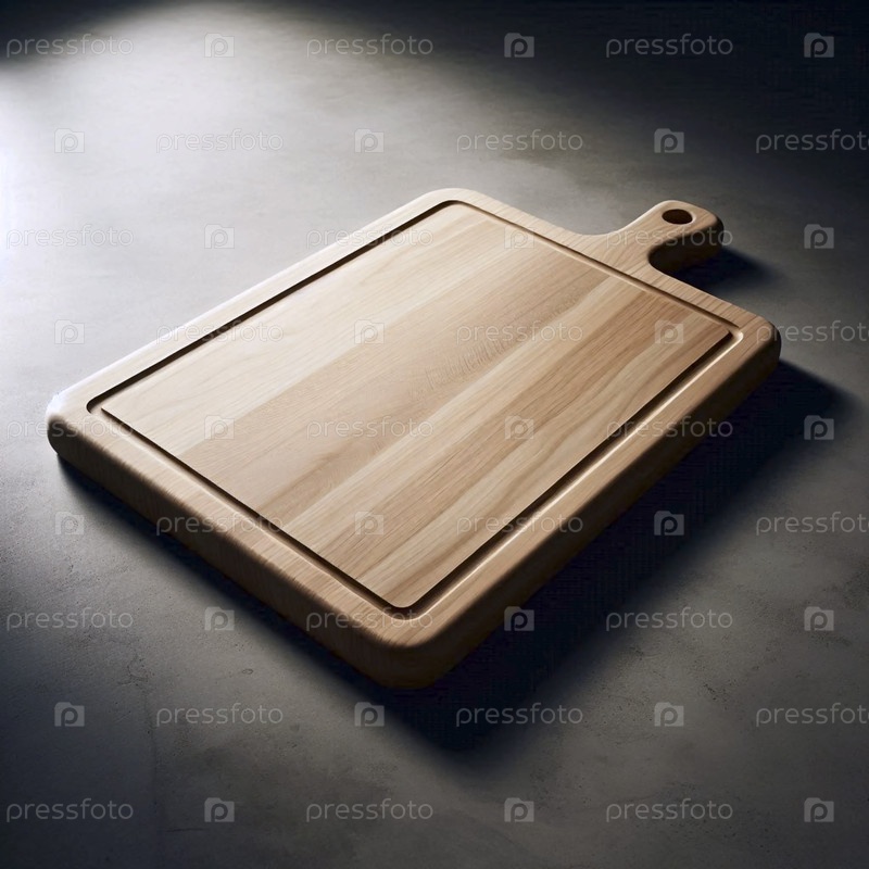 Макет деревянной доски для резки из твердого пепла, изолированный на бетонном полу, Ai generated image