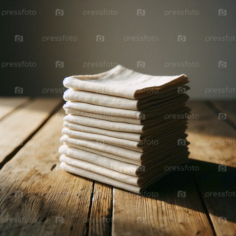 Куча макетов сырой льняной салфетки на изношенном деревянном столе, Ai generated image