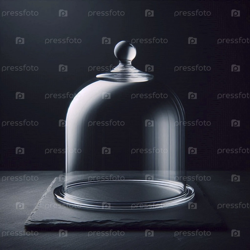 Прозрачный стеклянный макет cloche, не покрывающий ничего на сланцевом столе, Ai generated image