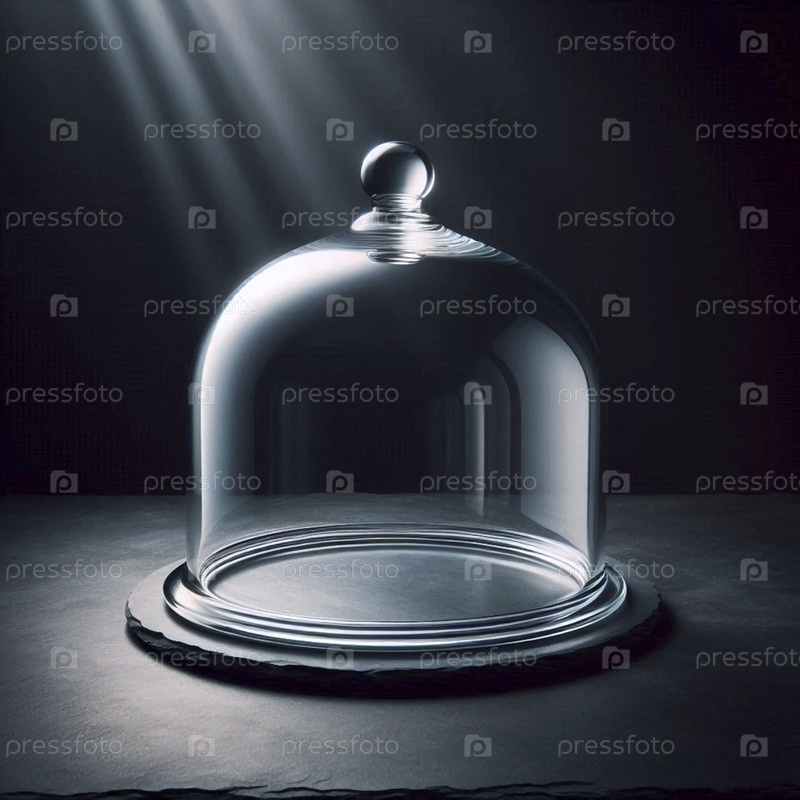 Прозрачный стеклянный макет cloche, не покрывающий ничего на сланцевом столе, Ai generated image