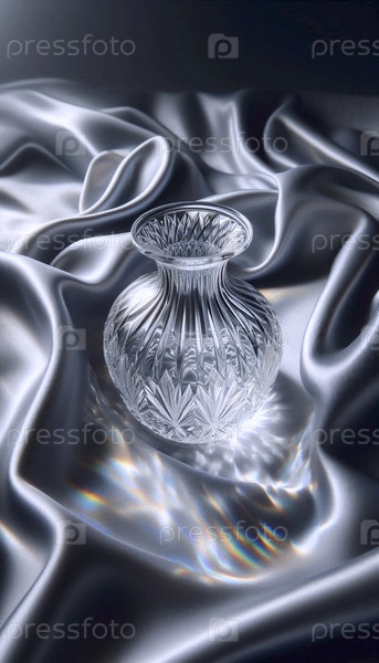 Минималистский макет кристаллической коробки с водой на шелковом постельном белье, Ai generated image