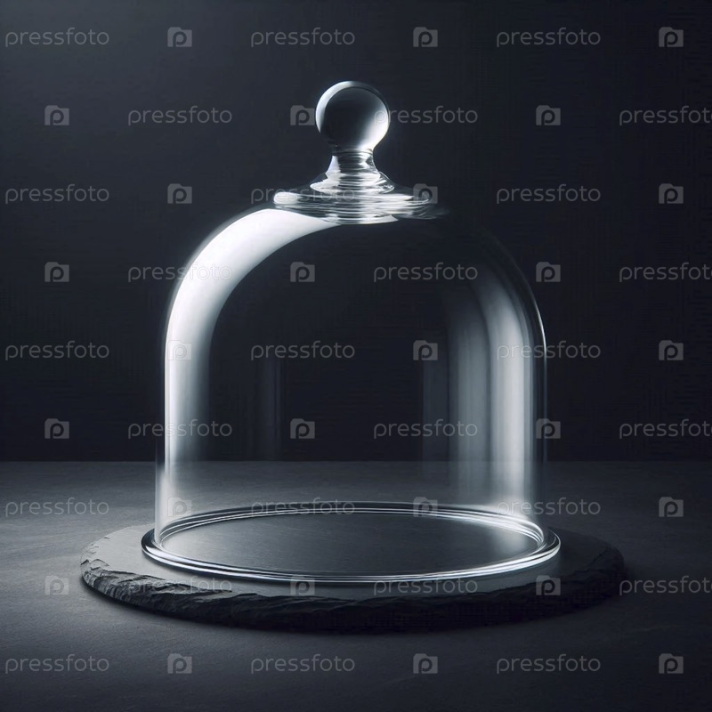 Прозрачный стеклянный макет cloche, не покрывающий ничего на сланцевом столе, Ai generated image
