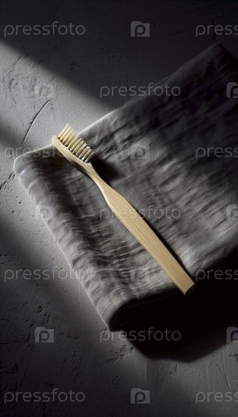 Мокет натуральной бамбуковой зубной щетки на сером текстиле, Ai generated image