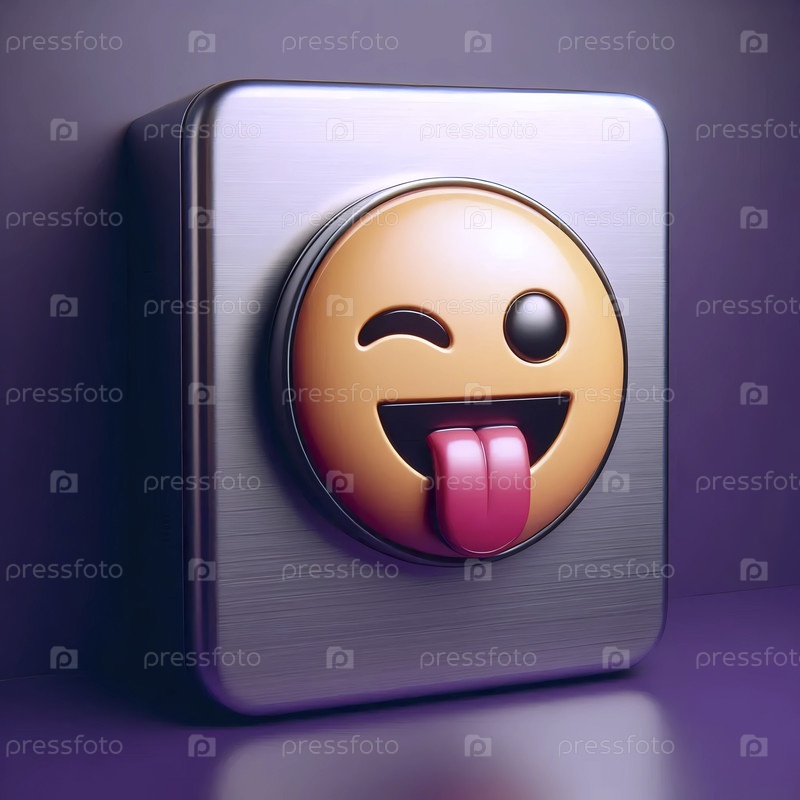 3D rendered smiley face Макет магнита на металлической фиолетовой поверхности, Ai generated image