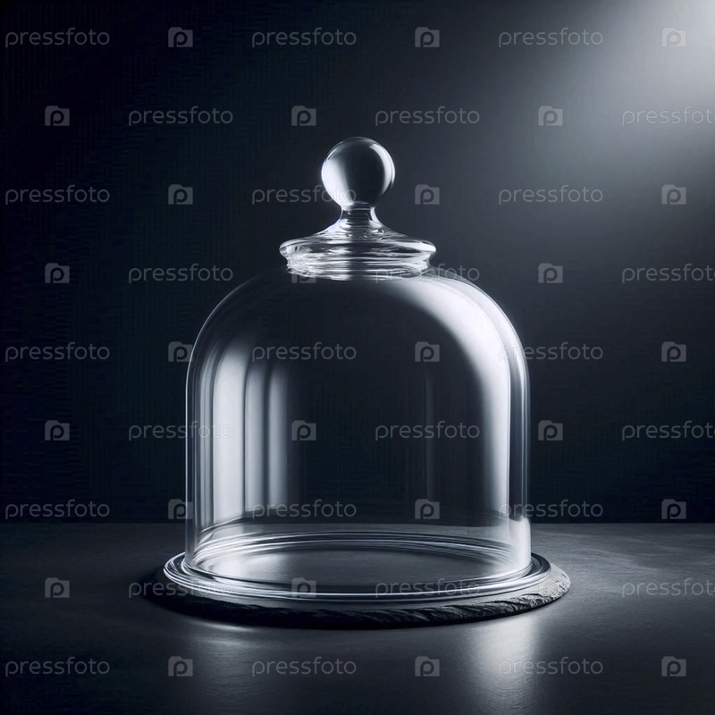 Прозрачный стеклянный макет cloche, не покрывающий ничего на сланцевом столе, Ai generated image