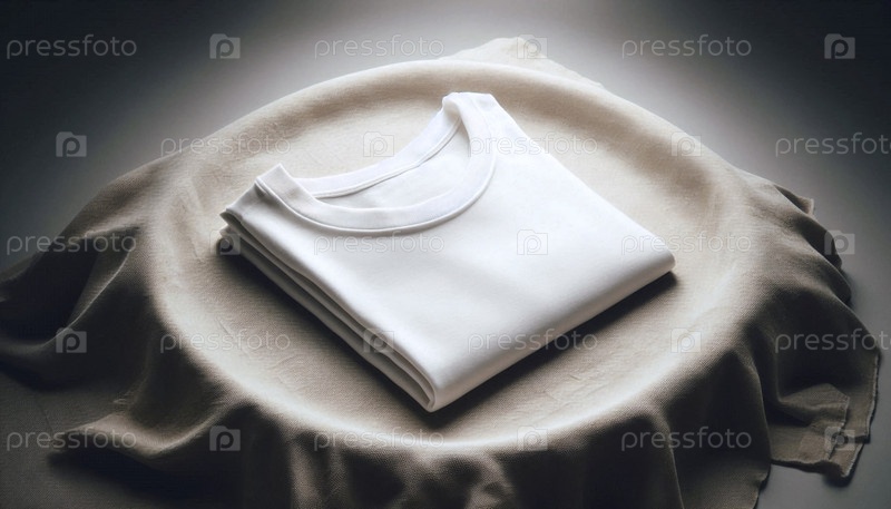 Мокет футболок из чистой белой органической хлопковой ткани, нежно сложенный на холсте из конопли, Ai generated image