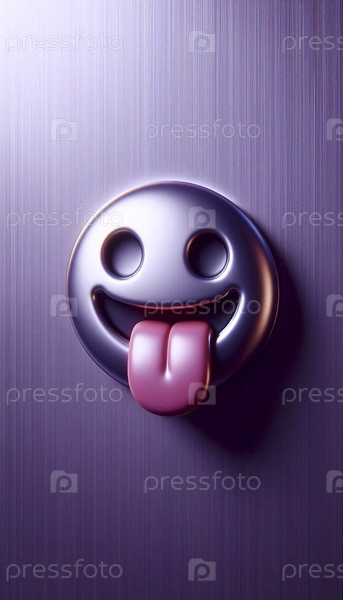 3D rendered smiley face Макет магнита на металлической фиолетовой поверхности, Ai generated image
