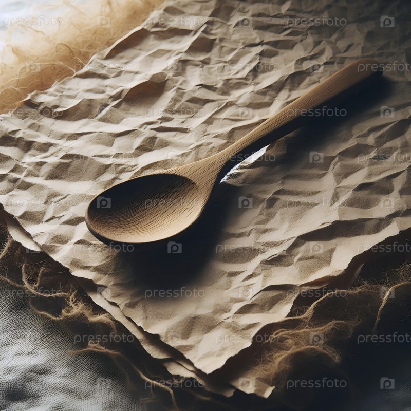 Макет изношенной деревянной ложки на ручной бумаге, Ai generated image