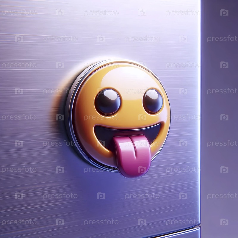 3D rendered smiley face Макет магнита на металлической фиолетовой поверхности, Ai generated image