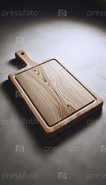 Макет деревянной доски для резки из твердого пепла, изолированный на бетонном полу, Ai generated image