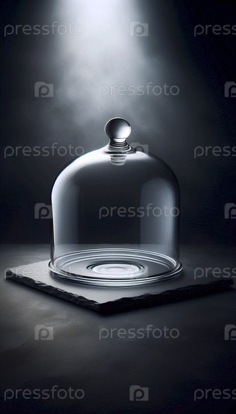 Прозрачный стеклянный макет cloche, не покрывающий ничего на сланцевом столе, Ai generated image