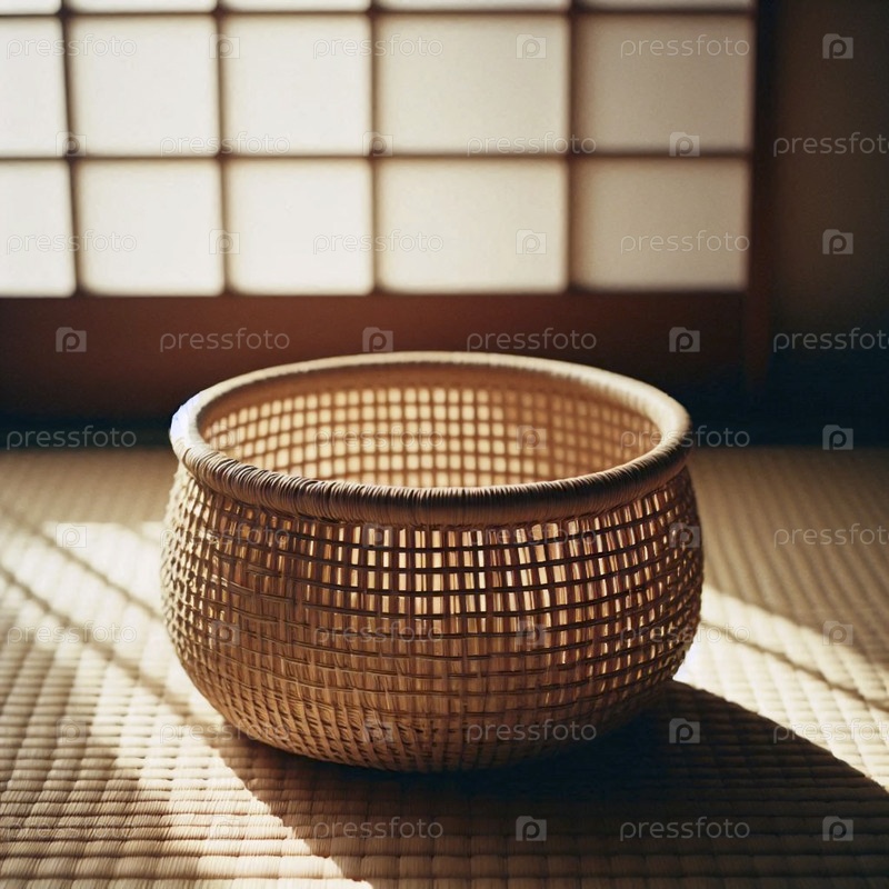 Пустой макет корзины из тканей морской травы на татами-матке, Ai generated image
