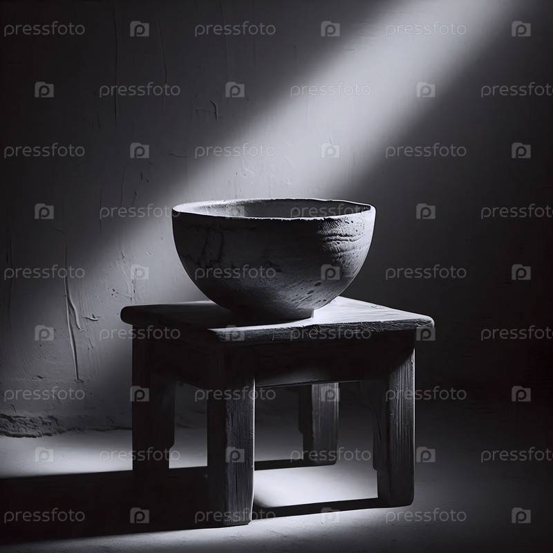 Мокет чайной чаши chawan, сделанный вручную на низком деревянном стуле, Ai generated image