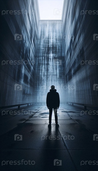 Силуэт в утреннем тумане на абстрактной городской стене, Ай создал изображение