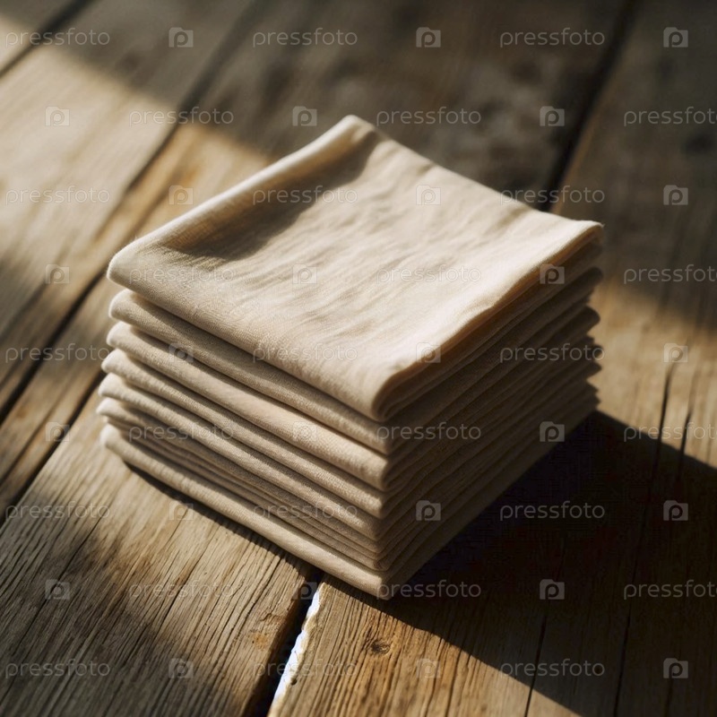 Куча макетов сырой льняной салфетки на изношенном деревянном столе, Ai generated image
