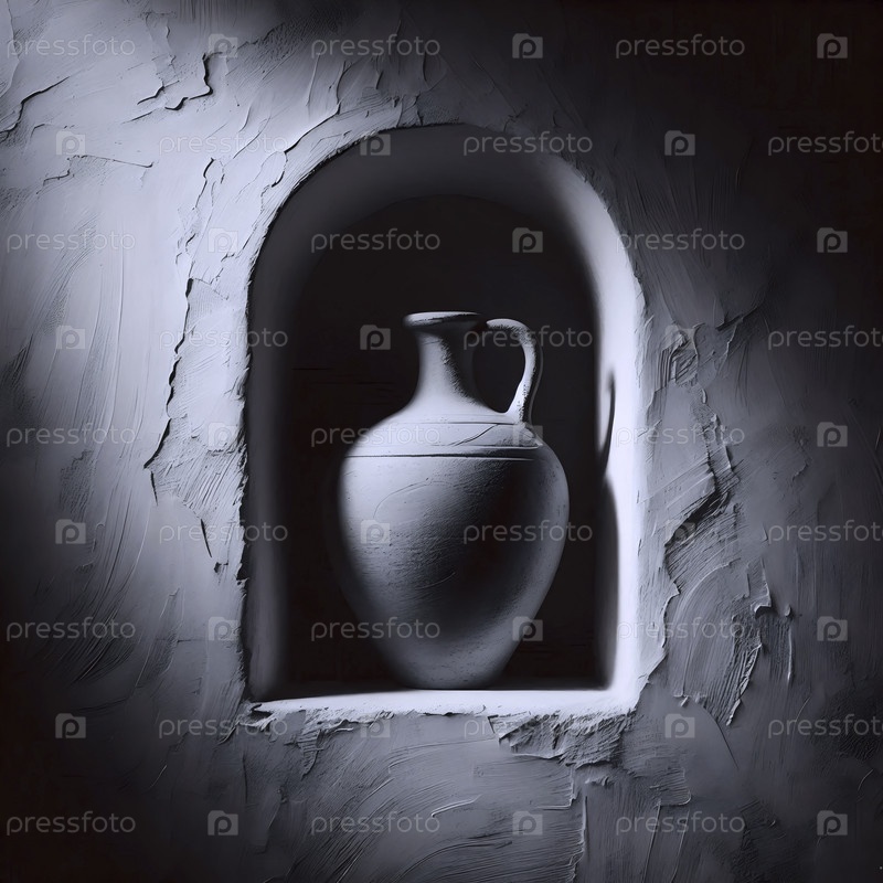Макет сырой терракотной чаши в нише белой гипсовой стены, Ai generated image