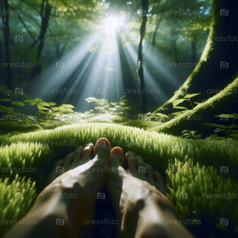 Спокойный момент купания в лесу и заземления, с голыми ногами на шее и пятничным светом Ай создал изображение