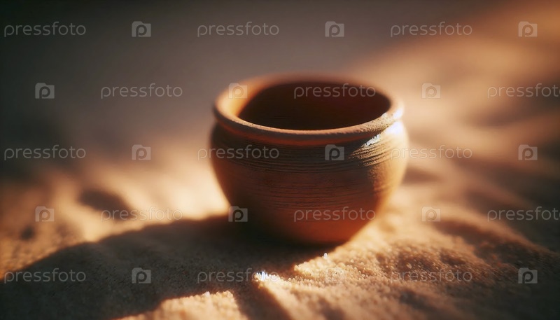 Небольшой макет терракотового горшка растений, пустой и сухой на песчаном грунте, Ai generated image