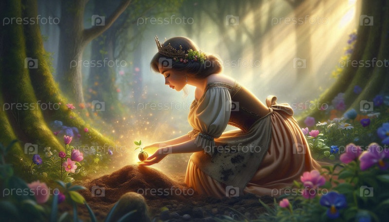 Принцесса сажает волшебное семя акварельный арт-принт, Ai A generated image