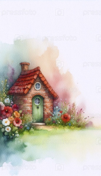Дружеский дом акварельный арт-принт, Ai generated image A