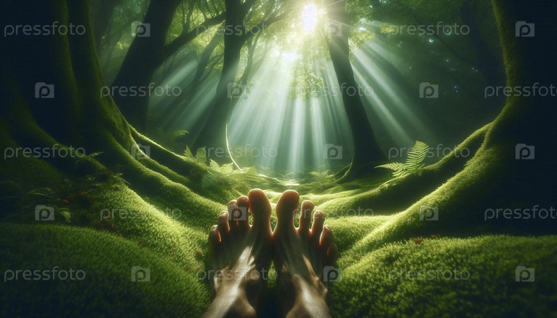 Спокойный момент купания в лесу и заземления, с голыми ногами на шее и пятничным светом Ай создал изображение